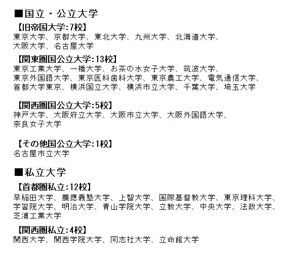 これは、旧帝大と東京都内の有名私大で埋まってしまう枠だ。